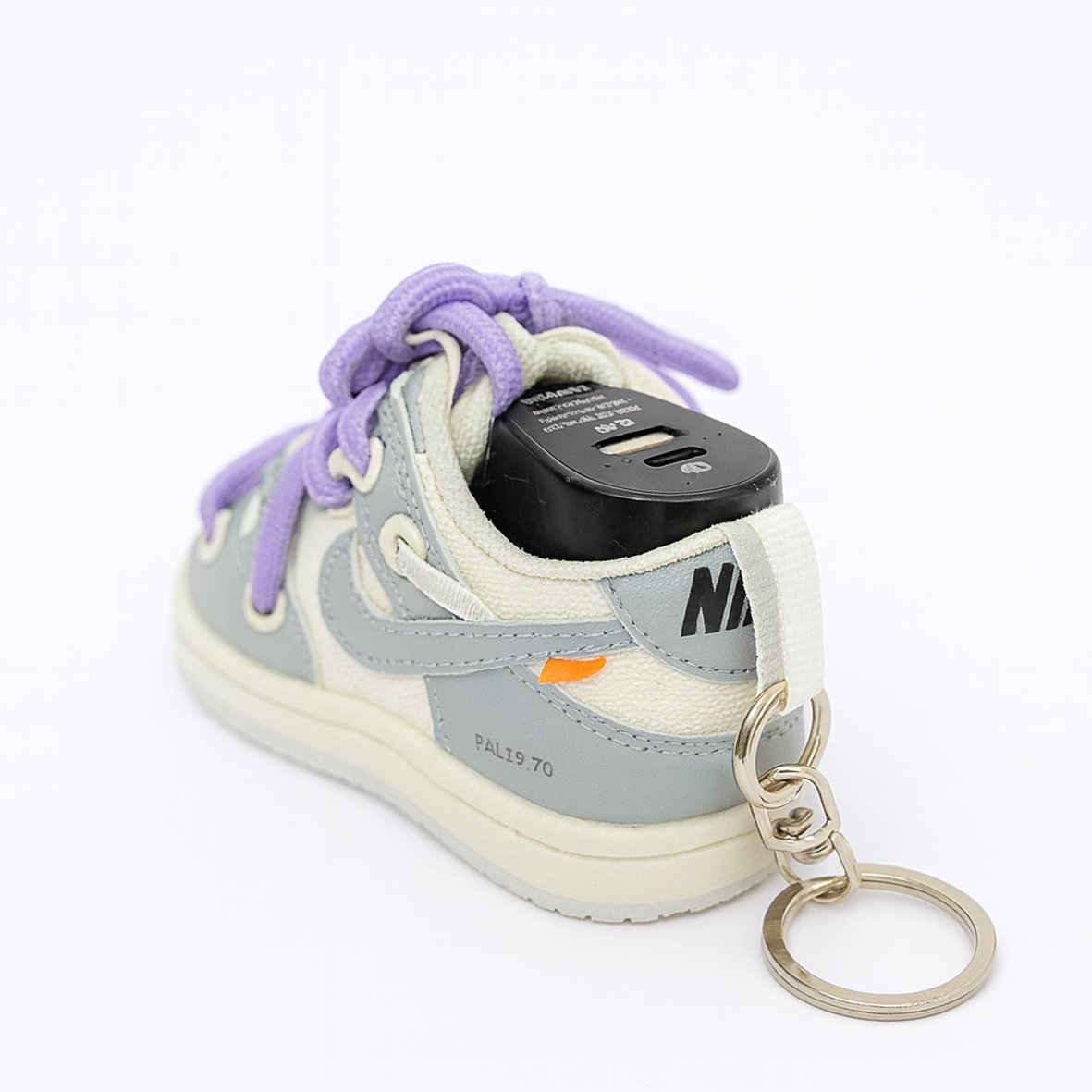Inspiré de la mythique Nike Dunk X Off-White, ce porte-clé unique combine design sneaker collector et batterie externe intégrée. Compact, tendance et ultra-pratique, il te permet de garder ton smartphone et tes écouteurs toujours chargés.